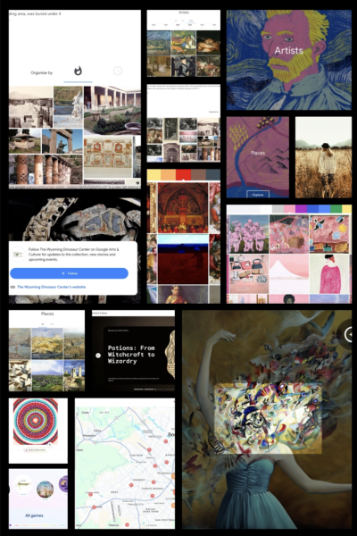 Nuestro recorrido comenzó explorando lugares históricos, como Pompeya y sitios arqueológicos, que aparecían en la sección de Places. Desde ahí pasamos por distintas rutas: obras de artistas reconocidos, experimentos con colores, mapas culturales e incluso exhibiciones temáticas como Potions: From Witchcraft to Wizardry. Finalmente, cerramos en propuestas más contemporáneas e interactivas, donde la experiencia se volvió lúdica y personal.