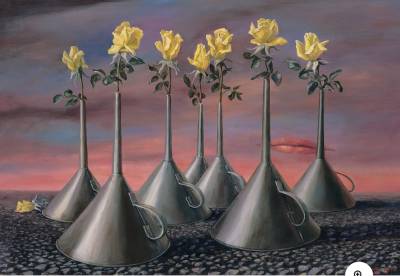 • Inicio: con obras que exploran el surrealismo onírico (paisajes extraños, objetos transformados). • Final: con una obra que reflexiona sobre la identidad y el tiempo, cerrando con una mezcla de simbolismo político y personal.