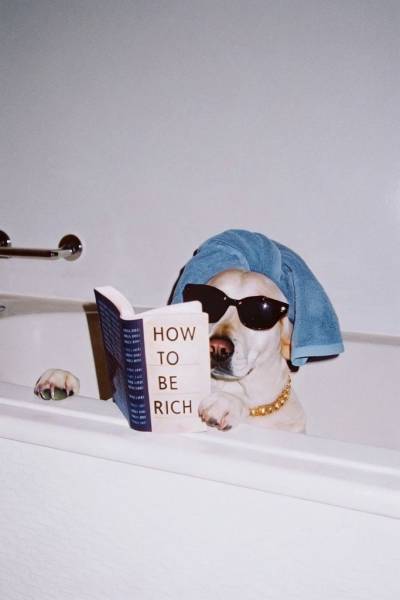 Prompt: Genera una imagen utilizando esta idea de un perro que es su propio jefe. La imagen debe ser de un perro Shitzu, que tenga gafas de sol, esté en un contexto Newyorkino, tenga un cafe latte en la mano, y esté viviendo su vida de boss, con mucho dinero.