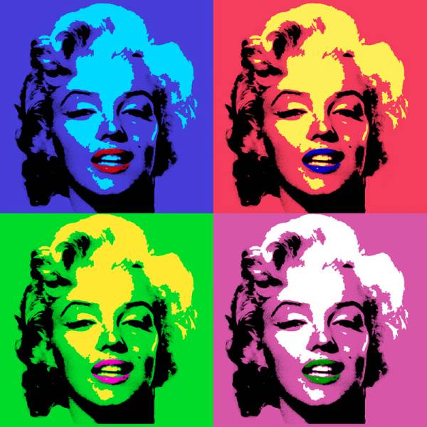 Prompt: “Crea una imagen parecida a la que adjunte. Quita a Marilyn Monroe de todos los cuadros. las remplazaras por: Mordecai y Rigby de “Un show mas” en el cuadrado azul; Gumball y Darwin de “el incredible mundo de Gumball” en el cuadrado rojo; Dipper y Mabel De “Gravity falls” en el cuadrado verde; y a Finn y Jake de “Hora de aventura” en el cuadrado rosado”
