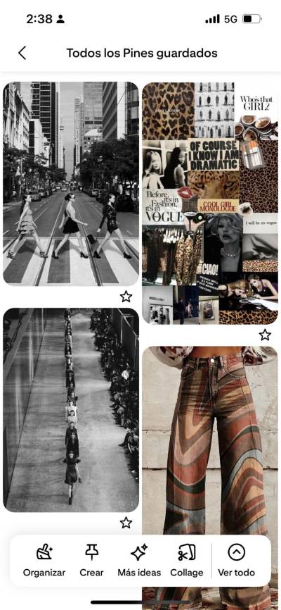 Ejemplo de producto creativo/cultural: El ejemplo que tengo de producto creativo son piezas que he hecho en Canva que lo subo a mis tableros en Pinterest, al igual que en esos tableros guardo ropa que me ha gustado, portadas de Vogue que me han gustado por su estética, pasarelas que me han llamado la atención.